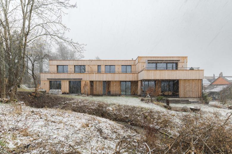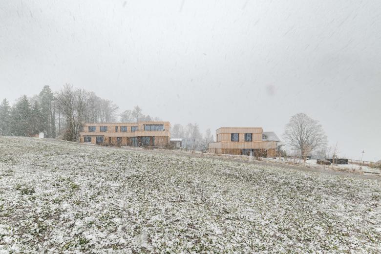 Für die Familie Senn dürfen wir in der Anhöhe von Maur ein Mehr­familien­haus und ein Ein­familien­haus planen und bauen. Der kleine eingedolte Bach auf dem Grund­stück wird freigelegt, umgelenkt und renaturiert. Im versetzt zum Einfamilienhaus geplanten Mehrfamilienhaus mit schönen Rundungen und Lauben entstehen stimmungs­volle Eigentumswohnungen mit Blick auf den Greifensee, die fernen Berge und die nahe Bachlandschaft.