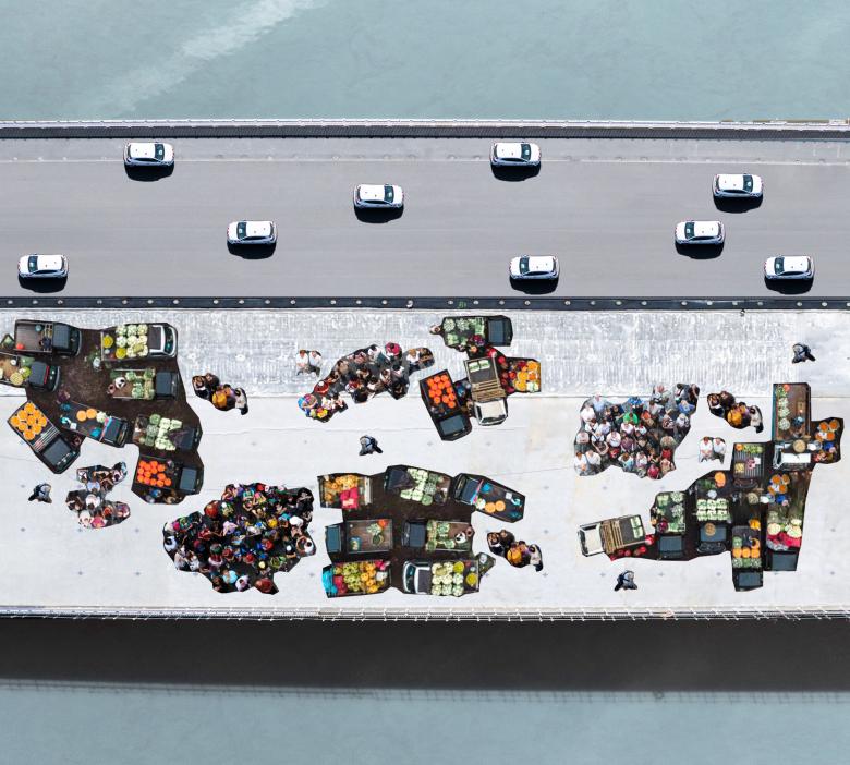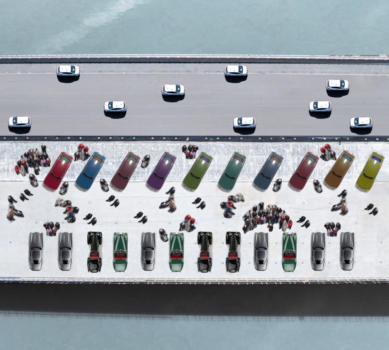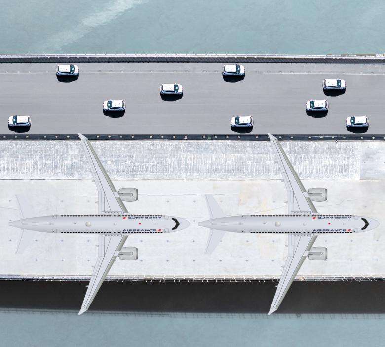 The Simone Veil Bridge consists of a platform stretched across the River Garonne in Bordeaux that is 549 meters in length and 44 meters wide. The bridge provides a new linear public space for the city. It abandons any interest in style, form, and blatant structural expression in favor of a commitment to performance and an interest in potential use by the people of Bordeaux. Cars, modes of public transportation, and bicycles all have their own lanes, with the largest by far dedicated to foot traffic. The width of the bridge’s platform is doubled to create neutral, unprogrammed space that can be used for any cultural or commercial purpose, such as markets, fairs, rallies, car club meetings, and festivals for music or wine.