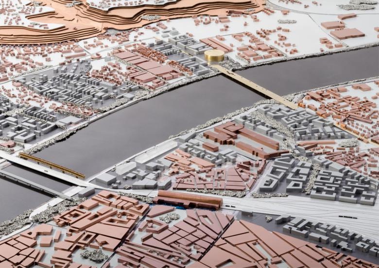 The bridge is conceived to create a unified identity for the areas on either side of the Garonne. It connects the development of Floirac on the right bank, where sculptural and functional objects are arranged to provide public amenities, with Bordeaux and Bègles on the left bank through green space that is subtly woven into the urban fabric, including with the reuse of a former highway. The bridge provides fundamental continuity for the city’s territory, through connection but also through its performance as an urban platform in a landscape.