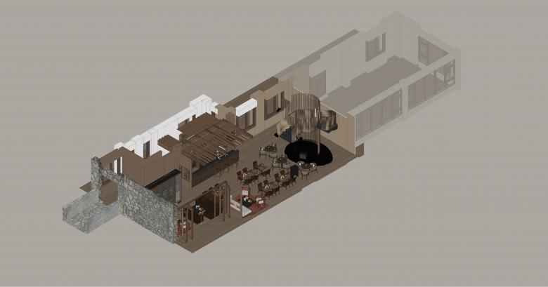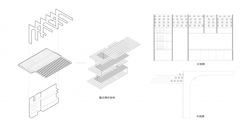 As the most important functional area within the bar, the bar counter naturally becomes the visual focal point of the entire space and therefore requires special attention. In this project, the bar counter serves as the core element reflecting the local character of the space. By incorporating structural features of traditional Tibetan architecture, the bar area offers a heightened sense of spatial dimensionality. The bar's main structure adopts traditional Tibetan mortise-and-tenon craftsmanship, meticulously assembled by local Shangri-La artisans using native walnut wood, achieving a seamless fusion of structure and ornamentation. The natural stone countertop and solid wood cabinetry panels further demonstrate a deep respect for traditional local materials and artisanal excellence.