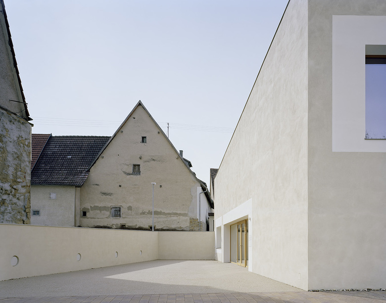 Unsere Überlegungen zur Ausformulierung des Baukörpers sind von Analogien zum Ortsbild von Hailfingen bestimmt. Durch architektonische Interventionen, wie die körperhafte Ausbildung des Gebäudevolumens und die Größe der Wandöffnungen, werden gewohnte Wahrnehmungsmuster herausgefordert und weisen auf die besondere Nutzung des neuen Gemeindehauses im dörflichen Kontext hin.