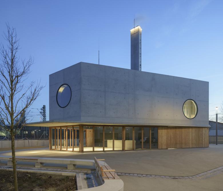 Kunstlichtkonzept für den Innenraum des Stadtteilcafes, das Sichtfenster zum Pufferspeicher und den Kamin