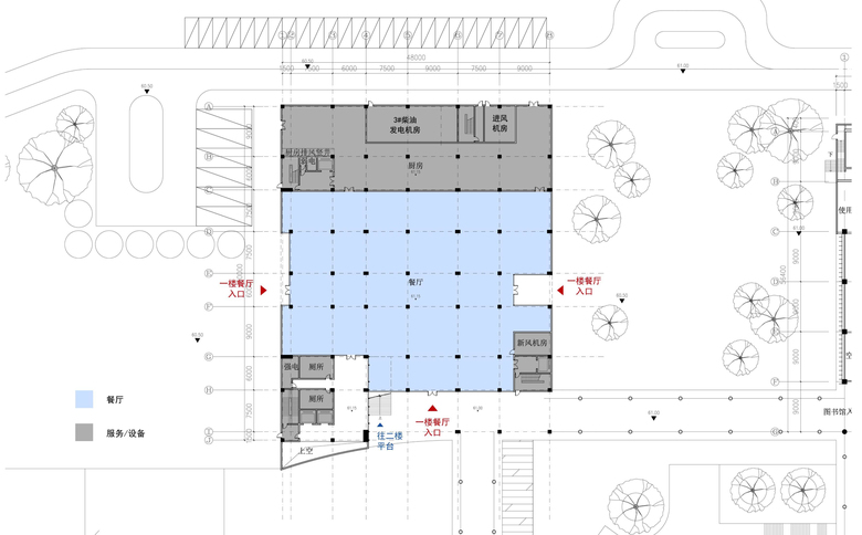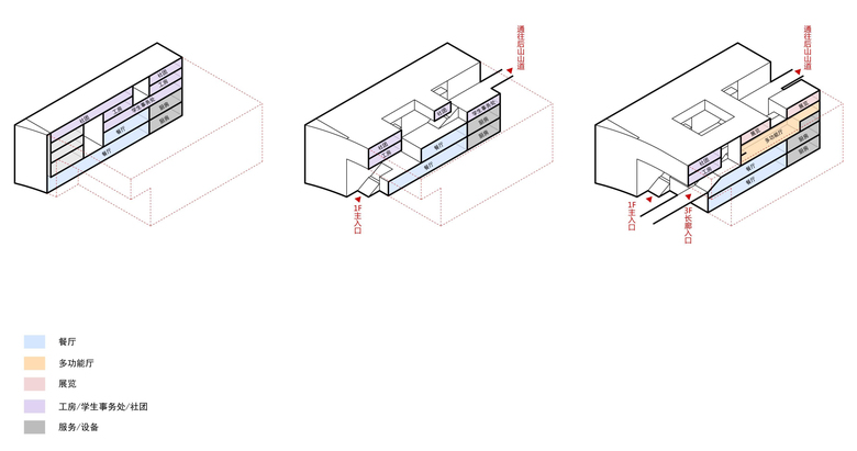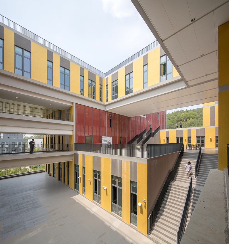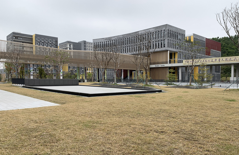 The student center of Shenzhen Campus of Chinese University of Hong Kong inherited the vertical yard and the horizontal corridors from traditional Lingnan architecture. Intersected space is transformed into a few ascending courtyards and platforms, which bring students from lower level to the semi-open courtyards and landscape of the back hill on a higher level. This building faces the central plaza and leans back on the slope of the hill, and it relates to the library at the north and the teaching buildings at the east. The interior space of the student center aims at vision guiding towards the green space in campus and the hill. Stairs and platforms penetrate through the building and forms a series of semi-open space, and while the space moves up, it also frames layers of view. Students can enter the center on platforms of different level from other buildings in the campus, to go to the canteen, the multi-function room, or the student’s clubs. Along with the circulation space, there are courtyards on different locations and levels, to connect with the nature. These corridors and courtyards are not only ideal communal space for students, but a space of micro-climate, to give better ventilation and light to the building.
