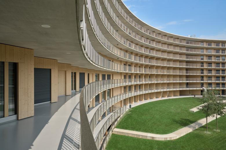 900 Tage für 900 Wohnungen – der Zeitplan für Planung und Bau des Studentenwohnheims Vortex in Chavannes-près-Renens war sportlich und nur dank Einsatz der BIM-Methode realisierbar. Aber das Gebäude musste schliesslich rechtzeitig für die Olympischen Jugendspiele fertiggestellt werden, die im Winter 2019/20 in Lausanne und Umgebung stattfanden. Der zehngeschossige Gebäudering steht am Rand des Campus der Universität Lausanne in Chavannes-près-Renens. Eine Besonderheit des zylindrischen Gebäudes ist die 2,8 km lange spiralförmige Rampe, die die Stockwerke verbindet und einen Zugang zu allen Wohnungen des Komplexes ermöglicht. Sie hat eine Steigung von weniger als 1 Prozent und hat auch eine soziale Komponente. Als «Gemeinschaftsweg» sozusagen fördert sie das Zusammengehörigkeitsgefühl, die Kommunikation und den Austausch unter den Bewohnerinnen und Bewohnern. Ein Teil des Stromverbrauchs im Vortex wird mithilfe der auf dem Dach installierten Photovoltaik-Paneele gedeckt. Ausserdem holen Wärmepumpen aus 60 Meter Tiefe Wasser aus dem Genfersee und führen es mit einer konstanten Temperatur von sieben Grad Celsius in die Heizzentrale.