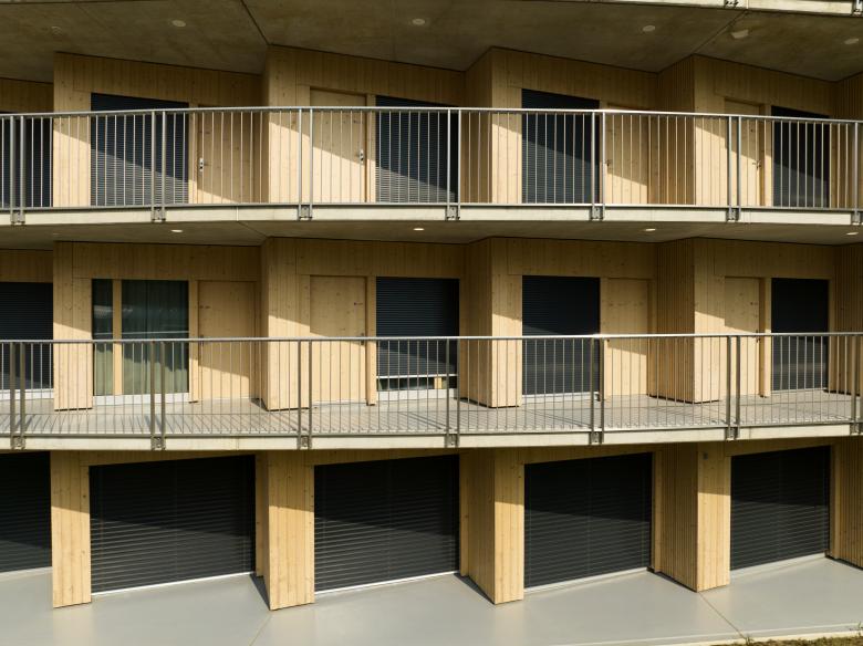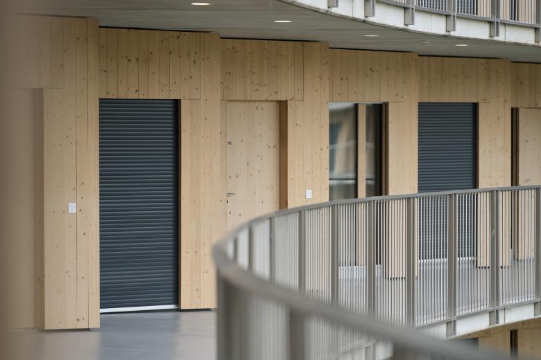 Lernen, schlafen, sich austauschen, gemeinsam kochen, Spass haben und neue Erfahrungen sammeln – all dies und noch viel mehr findet in einem Studentenwohnheim statt. Gemeinschaftsflächen, die zum Verweilen einladen, sind somit ebenso wichtig wie eine bestmögliche Privatsphäre. Und da sich hier viele junge Menschen auf einem Fleck tummeln, kann es natürlich auch schon mal laut werden. Beim Le Vortex spielt sich beispielsweise ganz viel Leben auf der Rampe ab. Gleichzeitig öffnet sich jede Wohneinheit zur Rampe hin mit einer Glasfront. All diese Parameter mussten bei der Frage nach einem passenden Sicht- und Sonnenschutz mitberücksichtigt werden. Der platzsparende Rollladen RL 37 von Schenker Storen bietet sowohl eine zuverlässige Abdunkelung als auch Sichtschutz für Privatsphäre. Seine leicht gerundeten Schiebeprofile sind geschäumt, was eine höhere Festigkeit sowie eine bessere Schall- und Wärmedämmung bewirkt. Durch Geräuschdämpfungseinlagen in den Führungsschienen ist ausserdem eine geräuscharme Bedienung garantiert. Die robuste Konstruktion aus Schiebeprofilen zeichnet sich durch eine lange Lebensdauer aus und ist absolut service- und wartungsfreundlich.