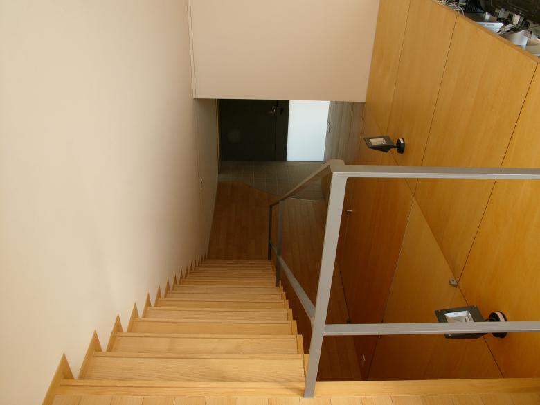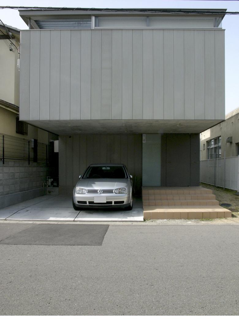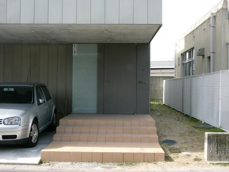 Along the roadside on the ground floor, space for two cars has been provided next to the approach; proceeding along the slightly recessed path from the road leads to the entrance hall.