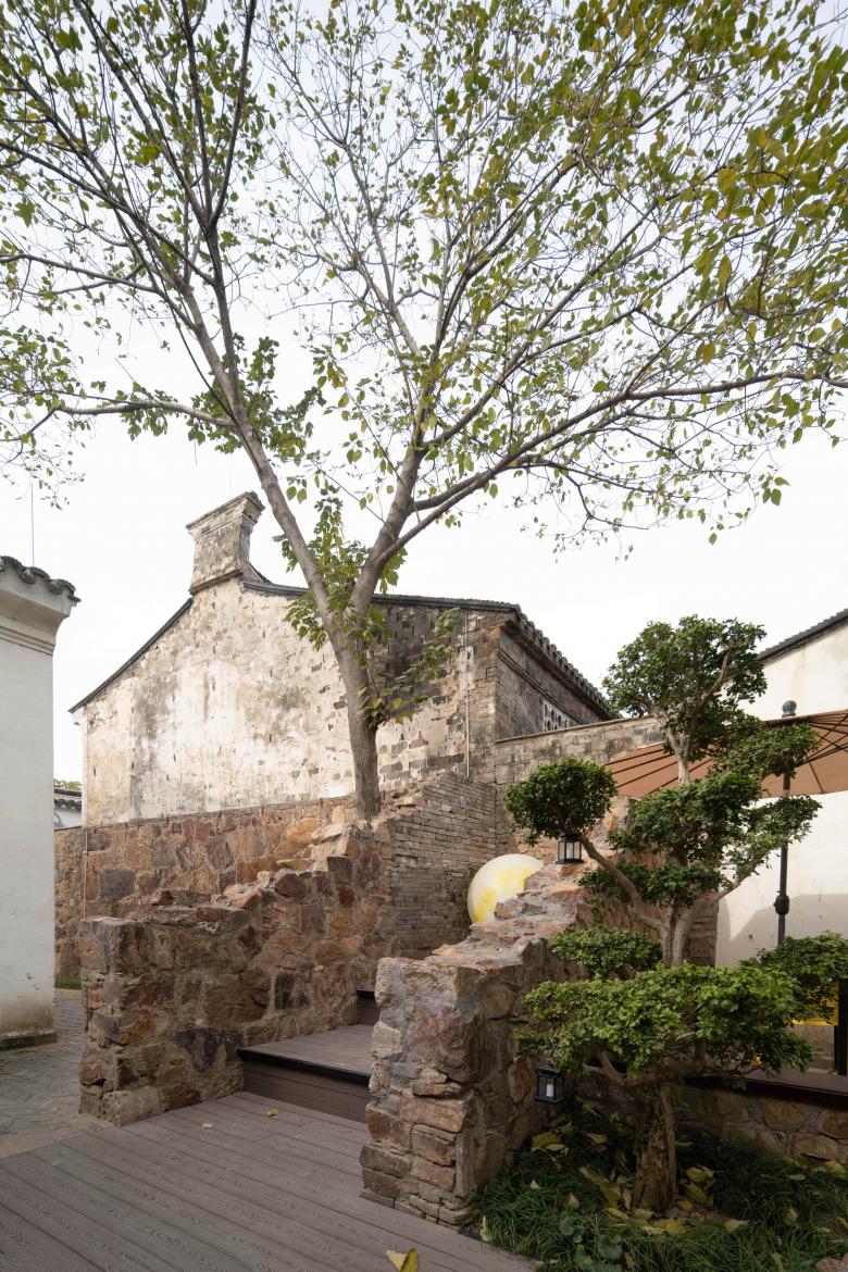 我们在保留后院遗存的黄石墙垣的基础上,增加了平台、阶梯、座椅等元素,以满足酒馆业态的使用需求。新业态的植入使这片废墟重获新生,让遗迹不再是仅供观看的展品。