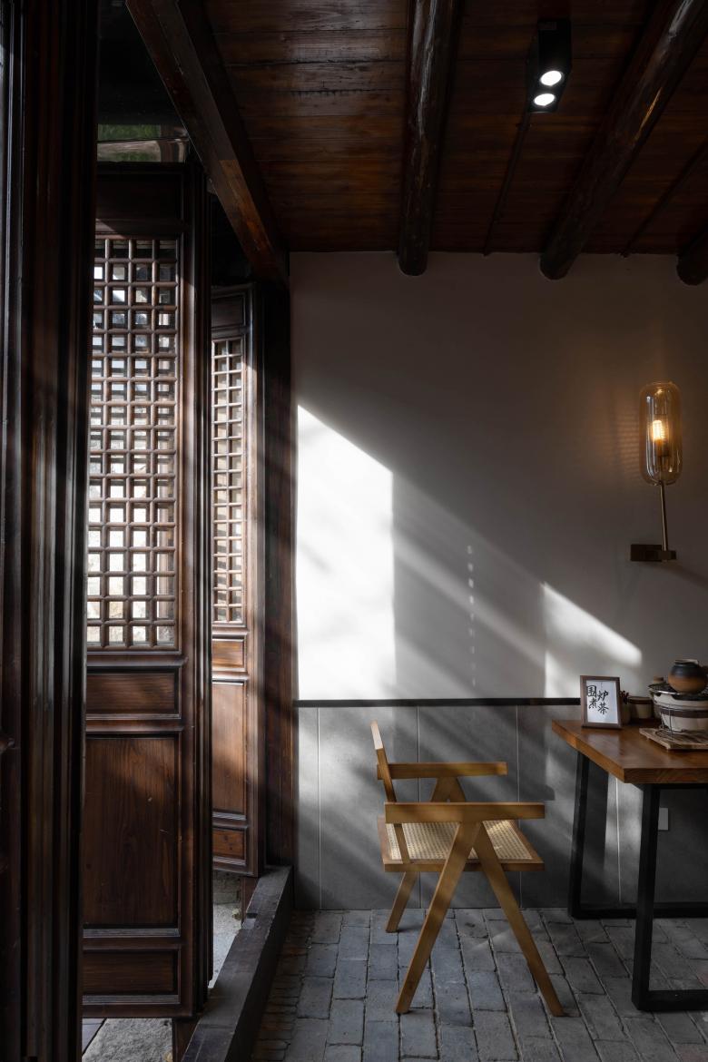 贯穿空间的门窗作为链接室内外空间的“纽带”,上午阳光可以从柱子与墙体中间的缝隙钻进来到室内区域,营造特别的阴翳美感。