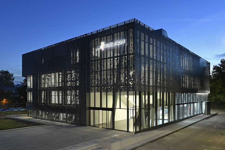 Neubau eines Technologie- und Schulungszentrums mit Maschinenhalle, Seminar- und Schulungsräumen, Auditorium, Büroräumen, Werkskantine und Cafeteria.