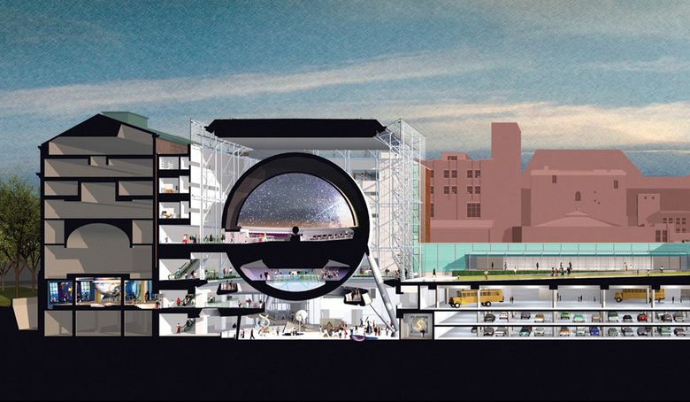 The Rose Center for Earth and Space redefines the identity of this venerable cultural and academic institution for the 21st century while respecting the historic architecture of the designated landmark. Along with the Arthur Ross Terrace, the Weston Pavilion and the renovated Theodore Roosevelt Park, The Rose Center completes the Museum’s north side. The iconic sphere, housed within a glass cube, contains the state-of-the art Hayden Planetarium and “Big Bang” theater, whose program describes the origins of the universe. The building itself is designed as a learning tool, as a visible expression of the science it contains. Its extraordinary curtain wall, structural system and lighting, its use of materials and color, its open planning and single, striking volumetric expression all reveal to the visitor an iconic example of building technology and science that makes this new building a worthy complement to the existing museum and an effective expression of the institution’s scientific and educational mission.