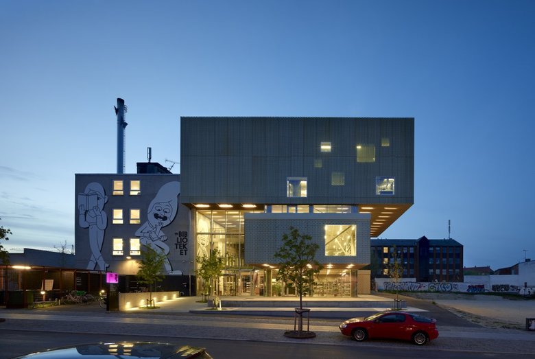 Nordvest (Northwest) is an area in Copenhagen located between the lively and diverse urban neighborhood of Nørrebro and the villa neighborhoods at the edge of the city. Many people live and work in this multiethnic area. Yet, since the area is located in the vicinity to numerous entry roads, most Copenhageners only use Nordvest as passage when going in and out of the city by car. The new Culture House and Library will help improve the identity of the area. It is designed to create a landmark and to provide a meeting point for the local community.