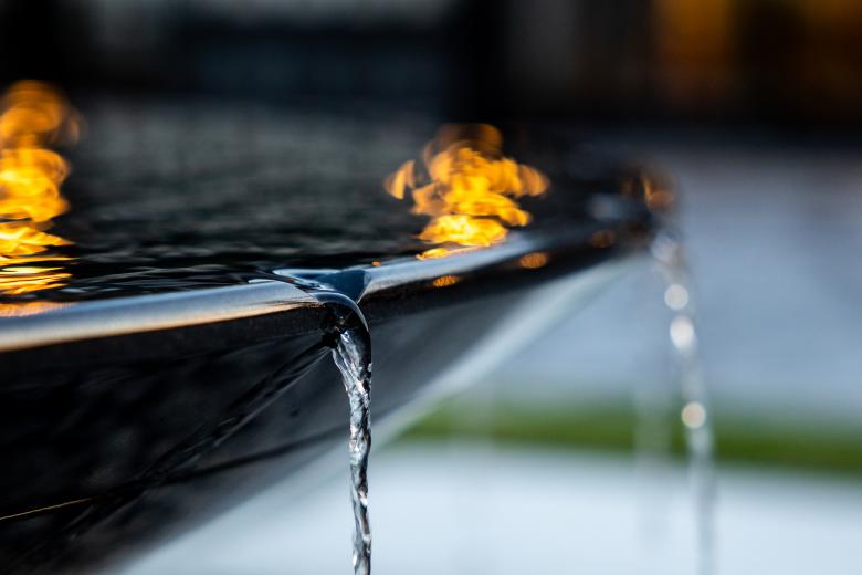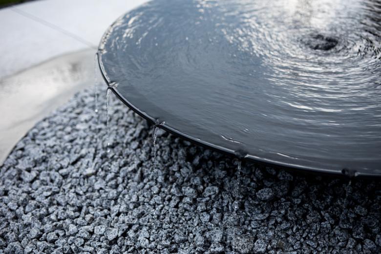 Once a month on the commemorative day, the vessel is filled with water and becomes a large water mirror. The water slowly fills the vessel from the outlet in the center, then trickles out as 19 white waterfalls from the grooves cut into the rim. As the water overflows with the vivid sky being reflected on the surface and the heart resonating sound of the falling water carried by the breeze, this place invites people to come together to interact.