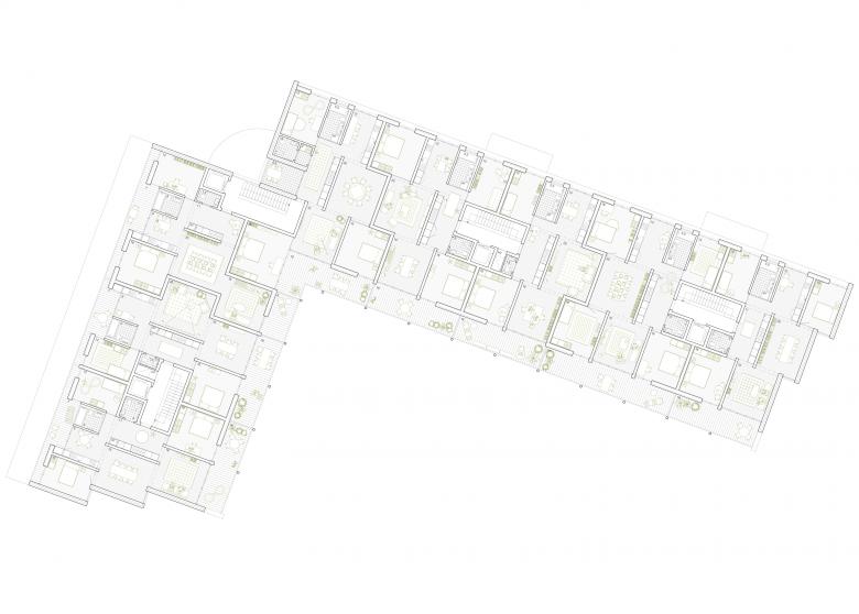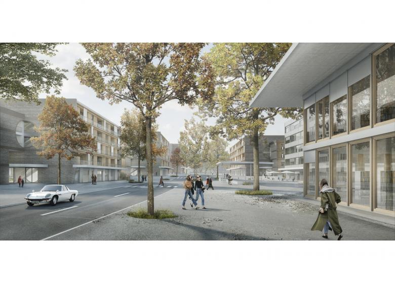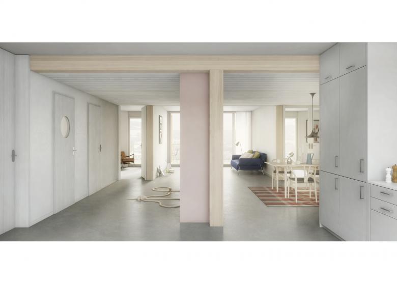 Dies ist der Rahmen für knapp 200 Wohnungen und Gewerbenutzungen. Sie sollen gleichermassen attraktiv und wirtschaftlich sein. Erreicht wird dies mit hochwertigen Freiflächen, überraschenden Fernsichten, einladenden Zugängen, warmer Materialisierung, individuellen Raumfolgen, ausgefeilten situativ adaptierten Grundrissen sowie der systematisiert konstruierten Gebäudestruktur. Auf diese Weise bestärken sich die ortsbaulichen, architektonischen, funktionalen und wirtschaftlichen Komponenten.