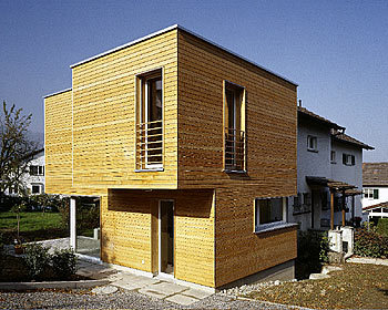Das Büniquartier wurde nach dem Krieg als gemeinnützige Wohnüberbauung konzipiert. Die zueinander versetzten Doppeleinfamilienhäuser wurden damals knapp bemessen und genügen den heutigen Ansprüchen nicht mehr. Die Überbauung ist denkmalpflegerisch als Gesamtsiedlung geschützt. Die Auseinandersetzung mit den Behörden über die Möglichkeit einen Anbau zu realisieren war Anfangs schwierig. Grundsatzdiskussionen, ob es richtig sei eine eigenständige Form oder eine anpässlerischer Anbau zu bewilligen, prägten die Gespräche.