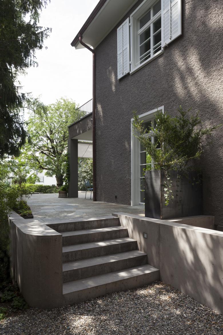 An dessen Stelle befindet sich jetzt eine Veranda mit Zugang zu einem grosszügigen Gartensitzplatz.