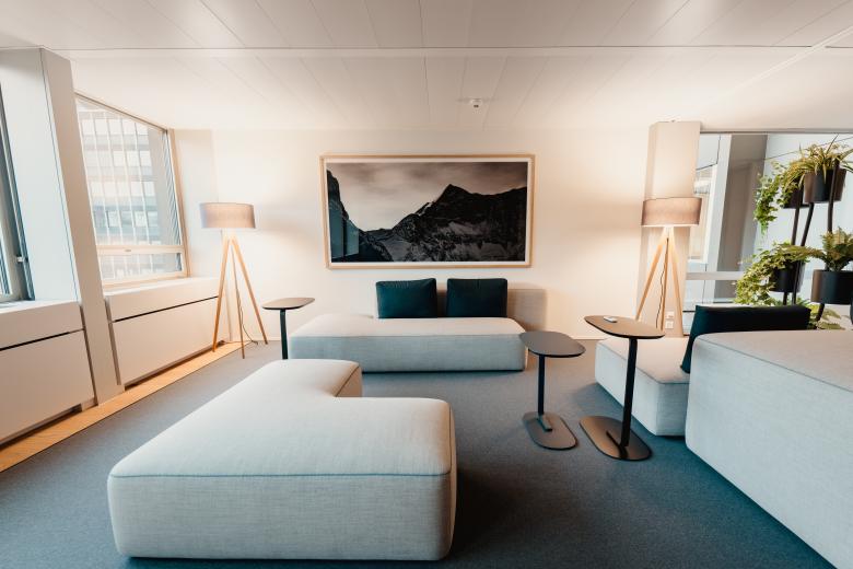 Eine dezente grüne Farbnuance ergänzt das Interieur und trägt zu einer modernen, zugleich ruhigen Raumwirkung bei. Das Konzept spiegelt unser Engagement wider, Arbeitsräume zu schaffen, die sowohl funktionalen als auch repräsentativen Ansprüchen gerecht werden.