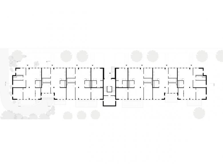 Künftig beherbergt das Erdgeschoss familiengerechte Wohnungen mit ebenerdiger Erschliessung, privaten Zugängen und hofseitig zugewiesenen Gartenflächen. Im darüberliegenden Geschoss erfolgt die Erschliessung der kompakten Studiowohnungen über einen neu integrierten, nordseitig angeordneten Korridor.