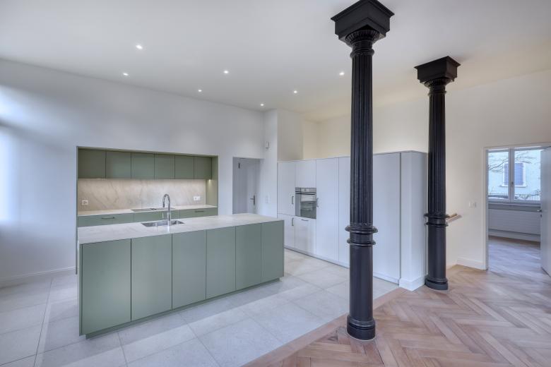 Umbau Mehrfamilienhaus mit einer Nutzungsänderung im Erdgeschoss von Restaurant zu Wohnung. Neubau eines kleinen Einfamilienhauses auf ehemaliger Gartenfläche mit unterirdischer Verbindung zu Bestandesbaute.