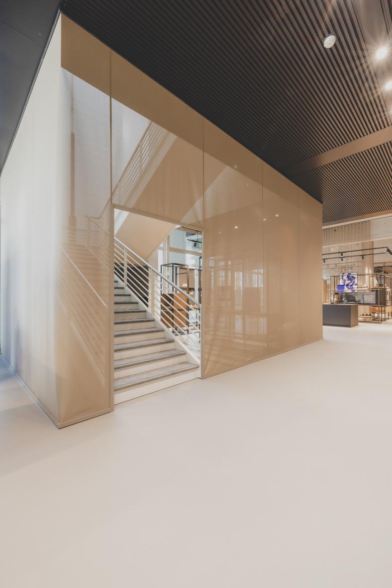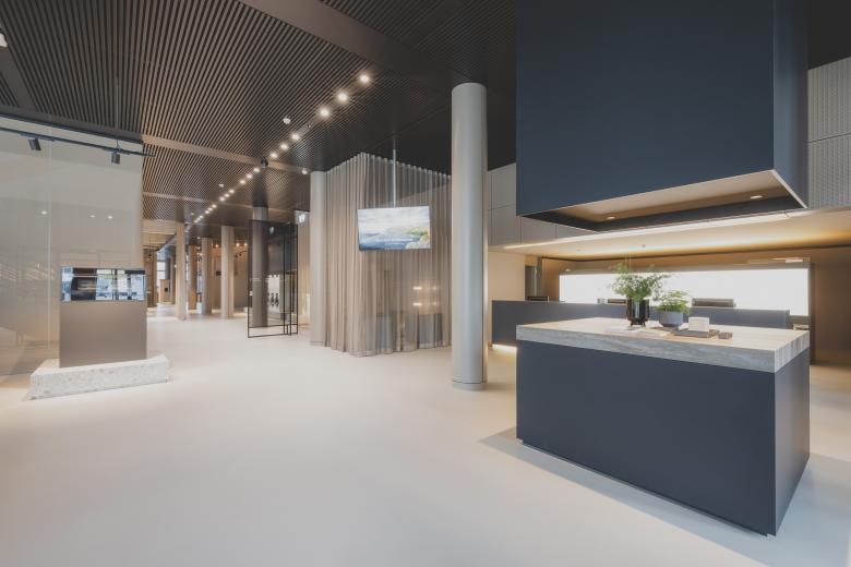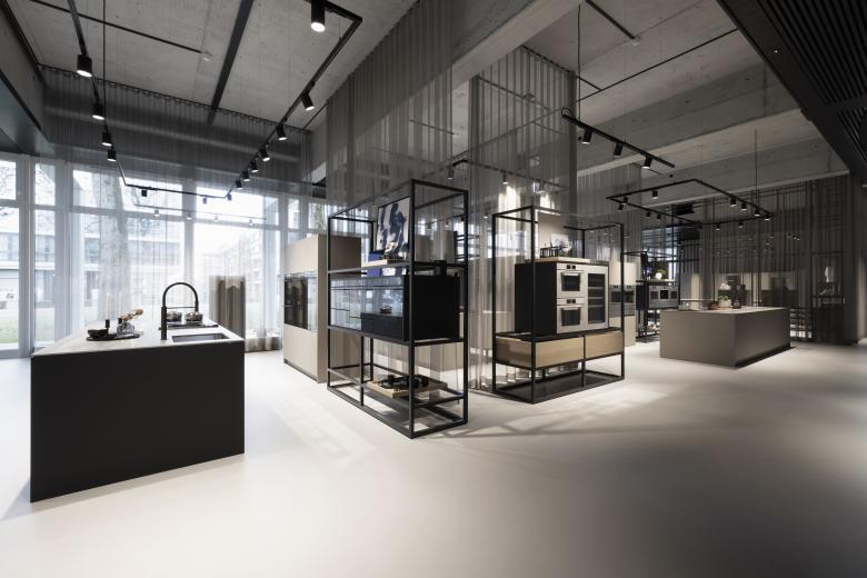 Ein weiteres neues Zuhause der Firma V-Zug heisst Besucher seit November 2022 willkommen. Auf rund 785 qm erstrahlt das Headquarter der Firma mit Sitz in Zug im definierten Design. Die Innenarchitektur, abgestimmt auf die freizügige Fläche, bildet neue Zonen und neue Räume. Eine „Kitchen-Journey“ ergänzt das Markenerlebnis. Der Kunde durchläuft mehreren Stationen, indenen er die Möglichkeiten und die Vielfältigkeit der Produkte aktiv kennenlernt. Ebenfalls neu ist die Zone „Young Kitchen“. Helle Farben in Kombination mit Eichenholz verschmelzen räumlich mit der klaren Formsprache von V-Zug. Mehrere Showküchen, ein Weinraum, der gemütliche Textile Care Raum bilden nicht nur den Weg zum hauseigenen Museum, sonden ergänzen das Gebäude in allen Facetten.