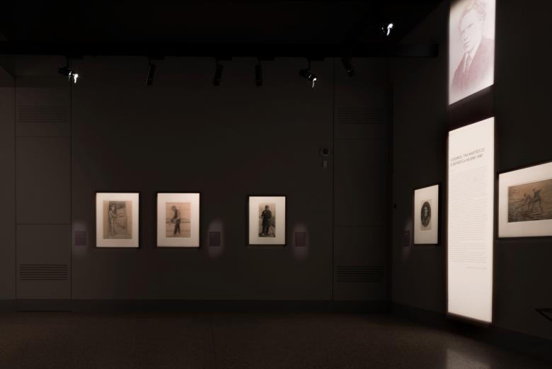 L'illuminazione assume un ruolo primario nella definizione spaziale e percettiva dell'allestimento. L'atmosfera volutamente scura, conduce il visitatore in un'atmosfera quasi teatrale, dove l'ombra fa da sfondo all'emergere vibrante dei dipinti. Coni di luce perfettamente centrati, scolpiscono le opere, rivelandone una potenza espressiva sorprendente e una forza visiva inattesa.