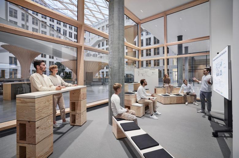 Der Neubau nach den Entwürfen von Tchoban Voss Architekten ist das deutschlandweit größte, fertig gestellte Holz-Hybrid-Bauwerk und erhielt die höchste DGNB-Zertifizierung als nachhaltigstes Gebäude in Deutschland sowie den „DGNB Diamant“ für herausragende gestalterische Qualität der Gesamtkonstruktion und der Innenräume.