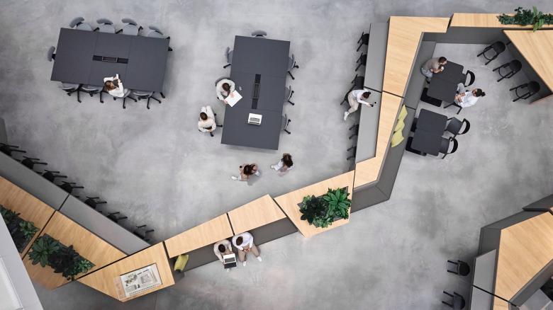 Die Teamareas dienen mit unterschiedlichen Farbgebungen einzelner Zonen zur besseren Orientierung im Gebäude. Jede „Teambase“ – unter den Mitarbeitenden gern auch als „Bushaltestelle“ bezeichnet - wird von den Teams individuell bespielt und steigert so das Identifikationsgefühl. Die Arbeitsplatzbereiche werden kombiniert mit eingestellten Phone Booths und Meetingboxen, Rückzugsbereichen zum Relaxen oder ruhigen Arbeiten, Zonen für Informal Meetings, Stauraumflächen sowie Lockereinheiten.