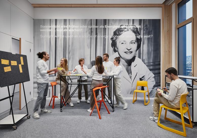In zwei Workshopreihen mit den MitarbeiterInnen aus den unterschiedlichen Abteilungen wurden gemeinsam Lösungen für die Struktur und Nutzungsmöglichkeiten der Grundrisse erarbeitet. Die Größe und Lage der Work Spaces, der Meetingräume und der Rückzugsbereiche wurden intensiv diskutiert und umgesetzt. Auch die Gestaltung der Teambereiche ist das Ergebnis eines partizipativen Prozesses mit den Vattenfall-Mitarbeitenden. Es wurden konkrete Nutzungsbedarfe besprochen, die Anordnung von Arbeitsinseln in unterschiedlichen Konstellationen durch die Botschafter der Abteilungen selbst festgelegt und anschließend zielgruppengerecht in die Planung übernommen. So entstanden maßgefertigte Arbeitsbereiche mit wechselnden Atmosphären und Nutzungskonstellationen.