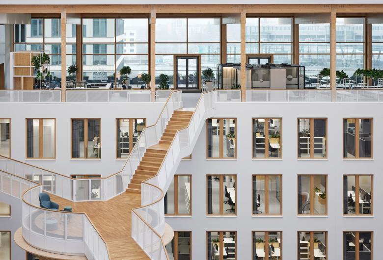 Das Architekturbüro de Winder begleitete EDGE bei der Suche nach den geeigneten Nutzern der Immobilie ab 2017 und übernahm anschließend die Planung und Gestaltung der rd. 22.000 m2 großen Arbeitswelt im Auftrag von Vattenfall. Die nachhaltige und innovative Ausrichtung des Gebäudes und der zukünftigen Mieterin ergänzten sich perfekt und dienten als Grundlage für die Entwicklung der neuen Büroflächen.