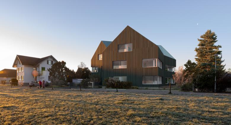 Über drei Geschosse bietet das Mehrfamilienhaus Platz für sechs Wohnungen. Strassenseitig noch zurückhaltend öffnet sich das Haus zum Grünraum auf der Südseite und bietet so jeder Wohnung ihren privaten Aussenraum. Ein elegantes Haus mit eigenständigem Charakter, dessen Erscheinung doch starken Bezug auf die umliegende Bebauungsstruktur nimmt.