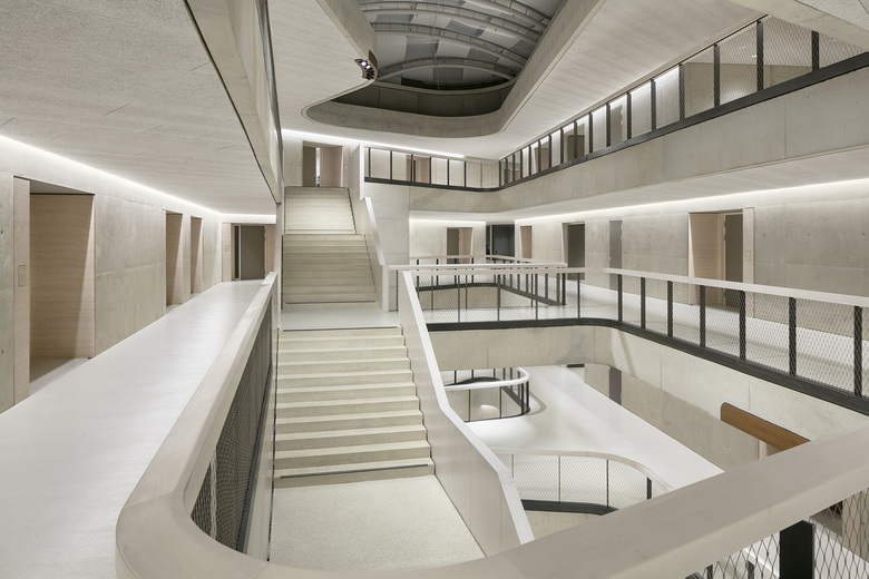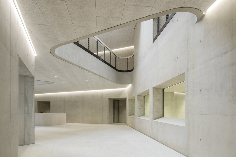 Insgesamt leistet die Beleuchtung einen wertvollen Beitrag zur visuellen Vermittlung der Architektur, klar und polygonal nach außen, weich und organisch nach innen. Sie arbeitet die Raumhüllen geschickt heraus, um alle Blickebenen szenisch erfahrbar zu machen.
