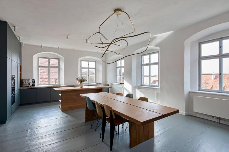 Bei der Auswahl der Ausstattung galt es, sich gestalterisch zurückzunehmen und zugleich höchste Qualität zu verwenden. Bei der Elektroausstattung fiel die Entscheidung auf das Schalterprogramm JUNG LS 990 in Alpinweiß. Mit seiner klaren Geometrie, der flachen Form und der neutralen Farbgebung fügt sich das Programm unaufdringlich in die historischen Räume ein. Es schafft eine dezente, aber präzise Verbindung zwischen Vergangenheit und Gegenwart – Technik, die sich harmonisch in den denkmalgeschützten Kontext integriert.