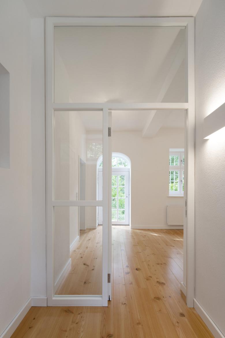 Durch die neugeschaffenen Büroflächen wurden im Westtrakt Räume frei für eine neue, ebenerdig gelegene altersgerechte Wohnung, im Südtrakt konnten ursprüngliche großzügigen Raumfolgen wieder hergestellt und zeitgemäße Küchen eingefügt werden.