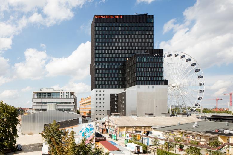 Mit dem Werk4 hat steidle architekten das 30m hohe Kartoffelmehlsilo auf dem ehemaligen Pfanni-Areal erhalten und zur Basis für einen transparenten, neuen Hotelturm umfunktioniert. Die Strategie der städtebaulichen Entwicklung: alte Struktur wird umgenutzt und ergänzt; bereits bestehende Nutzung wird erhalten. Im Inneren des Silos ist noch immer eine Kletterhalle zu finden, die um eine Outdoor-Kletterwand an der Fassade erweitert wurde. Im Silo befindet sich zudem ein Hostel, im Turm ein hochklassiges Hotel.