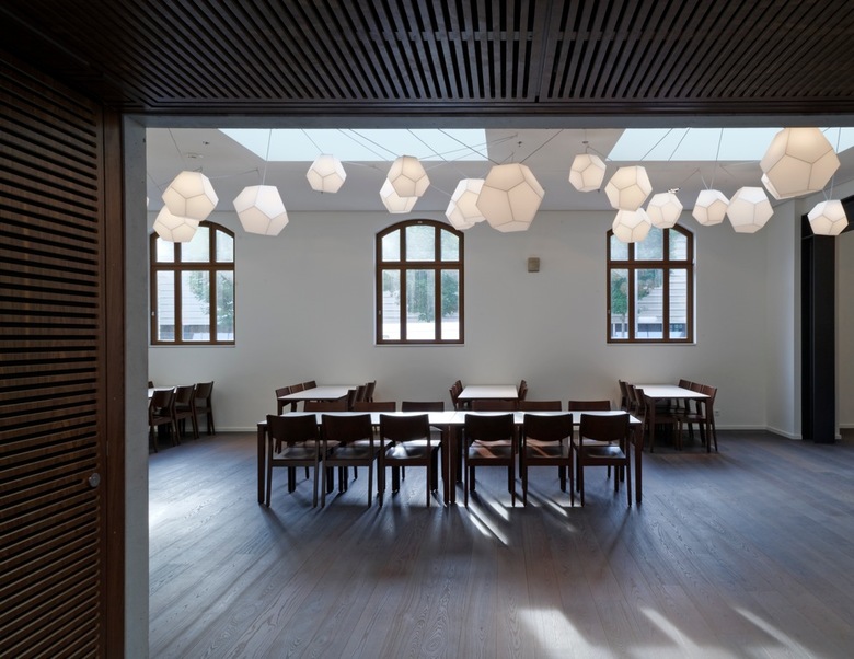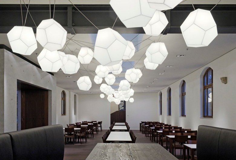 In der Alten Wache schweben oktaeder-förmige, eigens für das Projekt konzipierte Pendelleuchten in freier Verteilung durch den multifunktional nutzbaren Veranstaltungsraum. Die Leuchten wurden in drei verschiedenen Größen mit dimmbaren Kompaktleuchtstoff-Lampen ausgeführt.