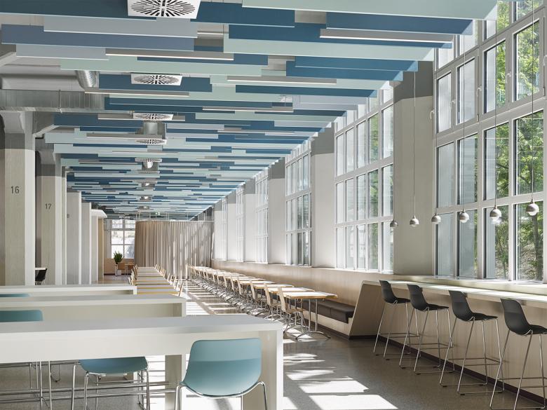Der Millionenbau der WMF Group in Geislingen wurde saniert. In Gebäude 80 sind nun das Betriebsrestaurant und moderne Büroarbeitsplätze untergebracht.