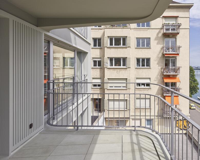Das Wohn- und Geschäftshaus, gelegen im urbanen Quartier St. Johann in Basel, profitiert von einer aussergewöhnlichen Lage: angebunden an die St. Johanns-Vorstadt einerseits und den St. Johanns-Rheinweg andererseits bietet es ein städtisches Wohnen mit zugleich unverbaubarem Blick auf den Rhein und das gegenüberliegende Kleinbasel.