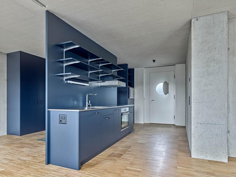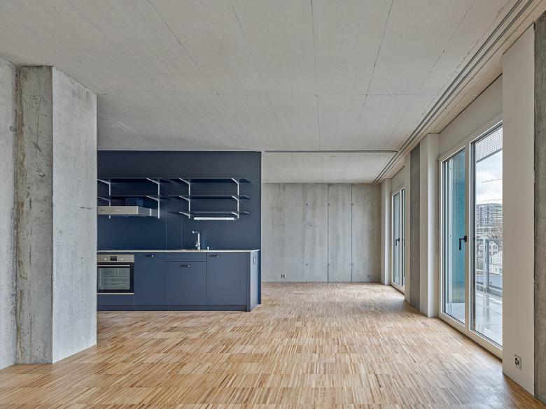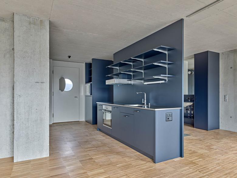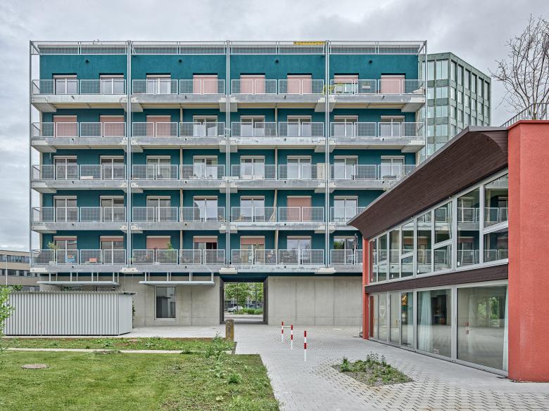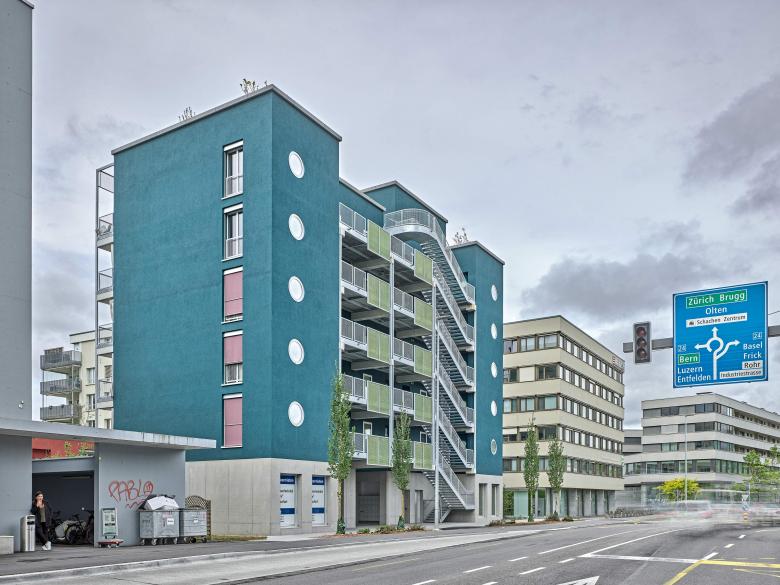 In Gehdistanz zum Bahnhof Aarau ist ein Neubau mit Micro-Wohnungen in ein städtisches Umfeld gebaut. Total sind 25 Wohnungen mit innovativen Nutzungsanordnungen und Raumfolgen unterschiedlicher Grösse zwischen 20 m² und 69 m² sowie Dienstleistungsflächen neu entstanden. Die Wohnungen werden durch offene, sozialräumlich wirksame Laubengänge zur Buchserstrasse erschlossen. Zur stark befahrenen Buchserstrasse hin orientieren sich Entrée und Nasszellen und, zum ruhigen Hinterhof ausgerichtet, befinden sich Wohnbereiche, Schlafzimmer und eine grosszügige Balkonschicht.