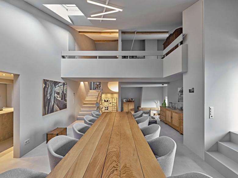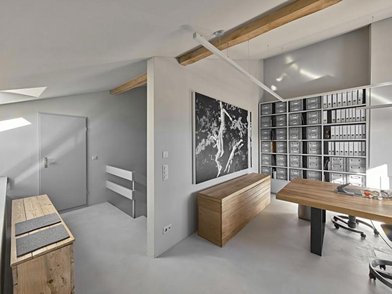 Umbau und grundlegende Sanierung des Bestands aus den 1970er Jahren für Wohnen, Office und Couture-Atelier. Umwidmung und Erweiterung der Garage zum Cubus, Umbau des Innenpools zur 2-geschossigen barrierefreien Einliegerwohnung mit Gästebereich.