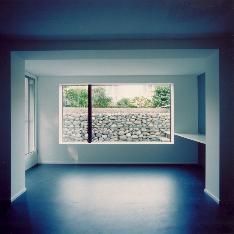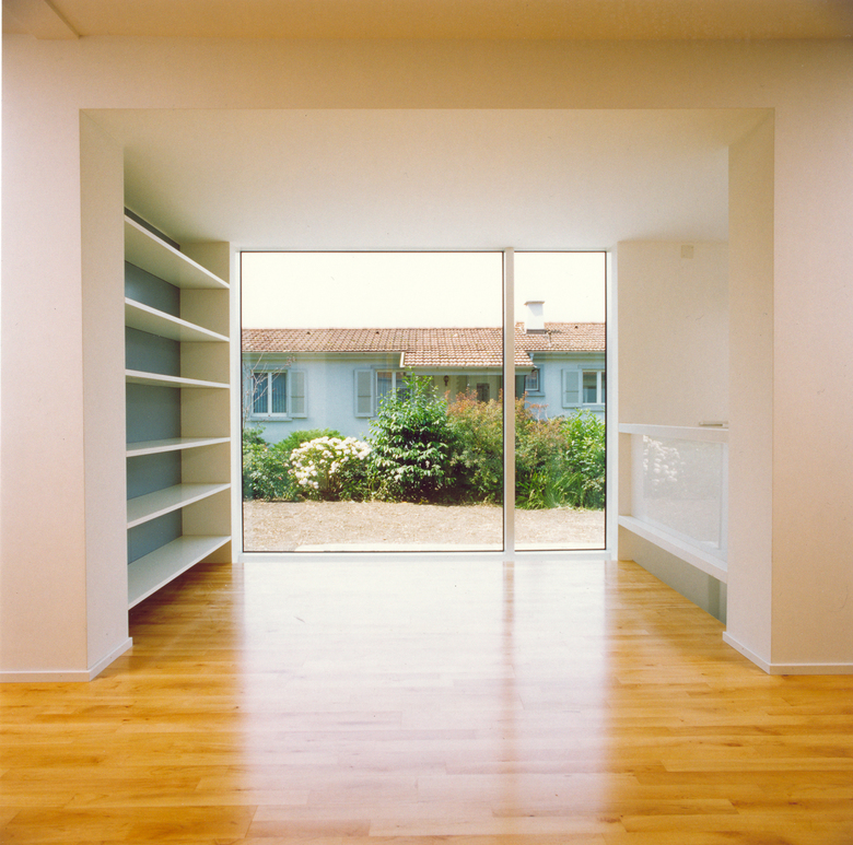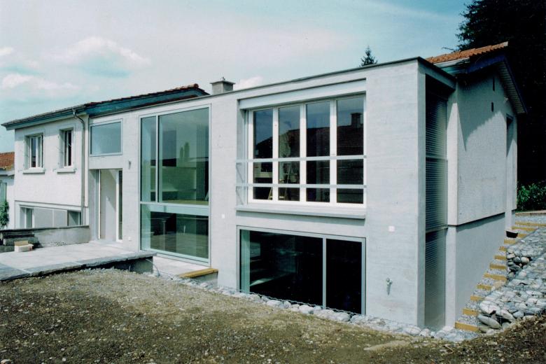 Die Reihenhaussiedlung Gartenheim wurde 1946/47 von Heinrich auf der Maur erbaut und gehört zur Schutzzone der erhaltenswerten Siedlungsbilder der Stadt Luzern. Der Eingriff für die südseitige Erweiterung besteht aus einer in Sichtbeton ausgeführten, mit grossen Fensteröffnungen versehenen Wandscheibe, die vor die ursprüngliche Fassade gesetzt ist. Drei Raumkammern greifen aus dem Altbau und bilden je eine Fensterachse. Die einheitliche, massive Bauweise mit den fassadenbündigen Fensterfronten nimmt Bezug zu den verputzten Fassaden, zeigt jedoch durch ihre zeitgemässe Erscheinung die Idee der zweigeschossigen Erweiterung an veränderte Raumbedürfnisse im geschichtlichen Kontext.