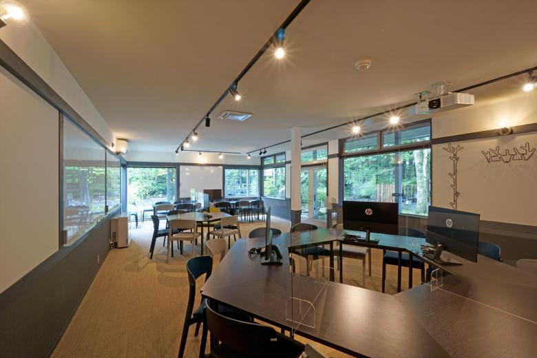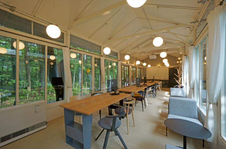 WORK x ation Site軽井沢/ワーケーションサイト軽井沢は長野県軽井沢のラウンドアバウト(六本辻)に面する建物のリノベーションとフォリーの増築プロジェクト。リノベーションは飲食店だった建物をフレキシブルなワークスタイルに対応するワーケーションオフィスへの変更。