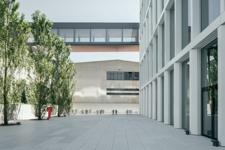 A més, s’ha creat un bosc de 350 arbres sobre 23.000 m² de vegetació, que millora la qualitat de l’aire, afavoreix la infiltració de l’aigua i compensa la petjada de CO₂. Complementen aquest espai un nou carril bici i un aparcament per a més de 600 vehicles amb pèrgola fotovoltaica, que promouen l’eficiència energètica i la integració del complex amb l’entorn natural i urbà.