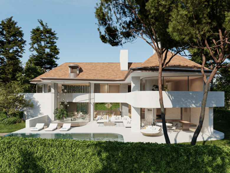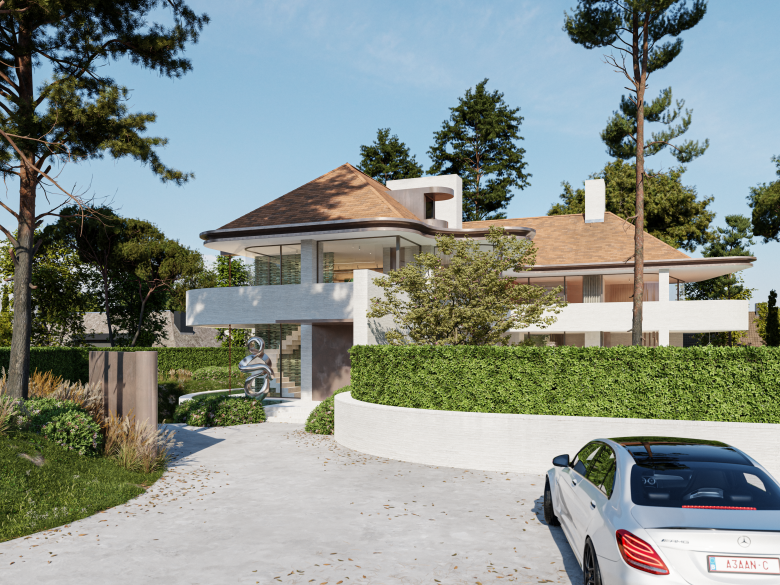 The round, dynamic lines flow seamlessly from the exterior to the interior, continuing inside where they bring the spaces to life. The organically shaped garden further enhances the harmony between the architecture and its surroundings, completing the design. A subtle balance between tradition and modernity, creating a unique and inspiring living experience.
