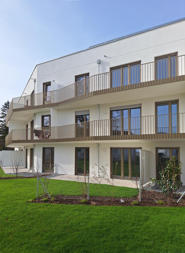 Es entsteht ein viergeschossiges winkelförmiges Haus mit zugeordneter Tiefgarage. Dieses schirmt den Straßenraum ab und öffnet sich nach Südwesten zu einem weitläufigen Garten, welcher den zukünftigen Bewohnern zur Verfügung steht. Die ideale Orientierung schafft hochwertige Terrassen- und Gartenwohnungen. Großzügige durchgehende Balkone machen die besondere Lage zum ruhigen und grünen Garten in allen Wohnungen erlebbar. Durch die rücksichtsvolle Einfügung von oberirdischer Bebauung und unterirdischer Tiefgarage konnte eine circa 80 Jahre alte Kastanie erhalten werden. Gemäß der Sozialgerechten Bodennutzung verpflichtet sich der Bauherr für einen Teil der Wohnungen zur sozialen Bindung.