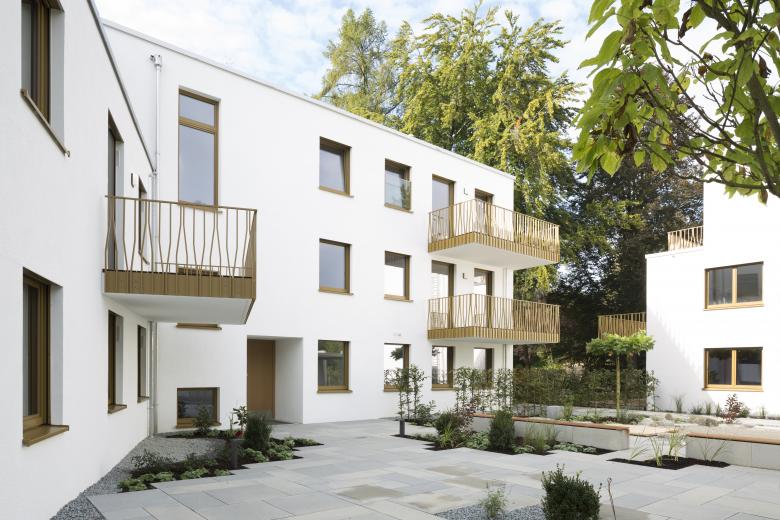 Die beiden neuen Wohngebäude liegen eingebettet zwischen großen Bäumen in unmittelbarer Nachbarschaft des Nymphenburger Schloßparks. Eine Besonderheit des Grundstückes sind mehrere einzigartige alte und große Bäume, welche bei der Einfügung der Baukörper in enger Abstimmung mit der Unteren Naturschutzbehörde berücksichtigt wurden. Die Bäume sind wesentlicher Teil des Gesamtensembles. Insgesamt sind zwei Gebäude mit jeweils 5 beziehungsweise 13 großzügigen und luxuriösen Wohnungen entstanden.