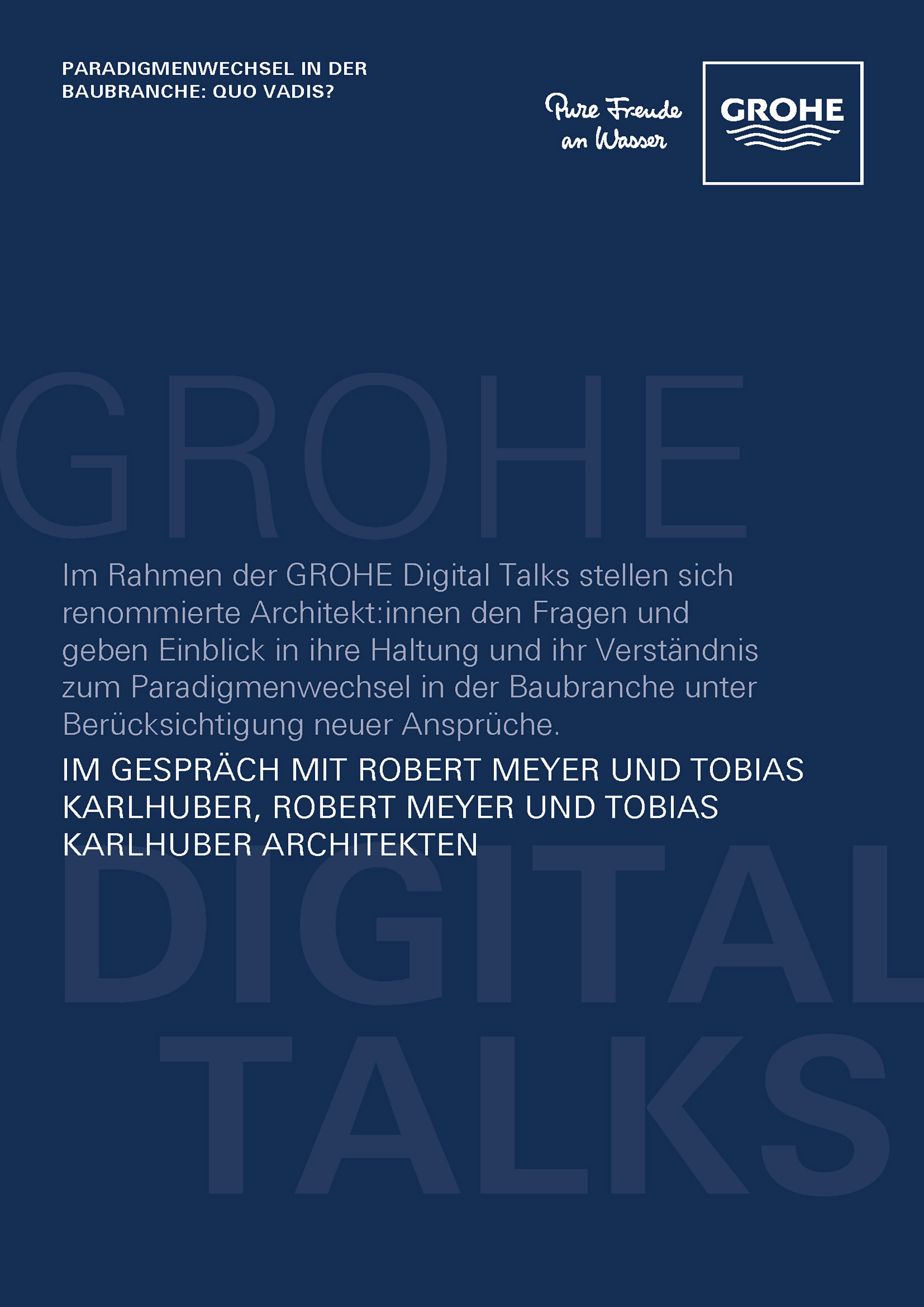 Im Rahmen der GROHE Digital Talks stellen sich renommierte Architekt:innen den Fragen und geben Einblick in ihre Haltung und ihr Verständnis zum Paradigmenwechsel in der Baubranche unter Berücksichtigung neuer Ansprüche.