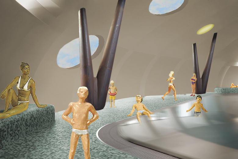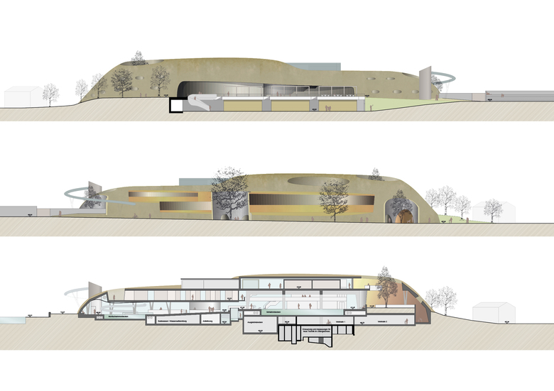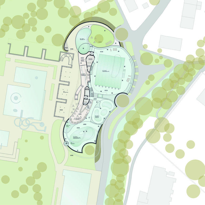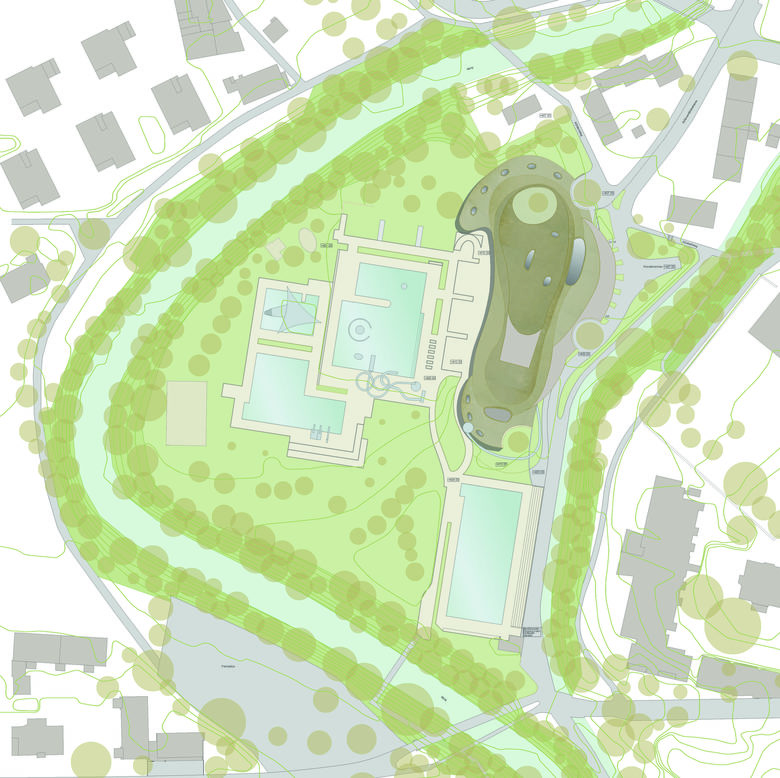 Das alte Hallenbad in Frauenfeld soll durch einen Neubau ersetzt werden. Das neue Hauptelement der Badeanlage entwickelt sich aus der Figur eines Hügels - einer Aufstülpung des Geländes zum weichen Körper - gewachsen aus der Landschaft.