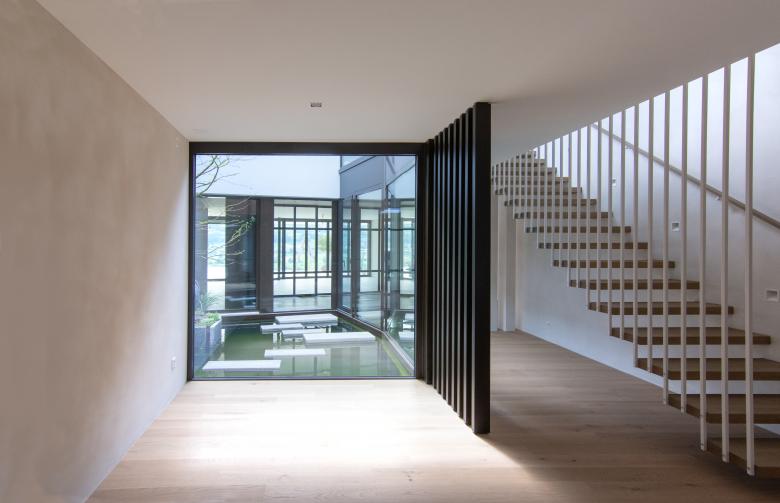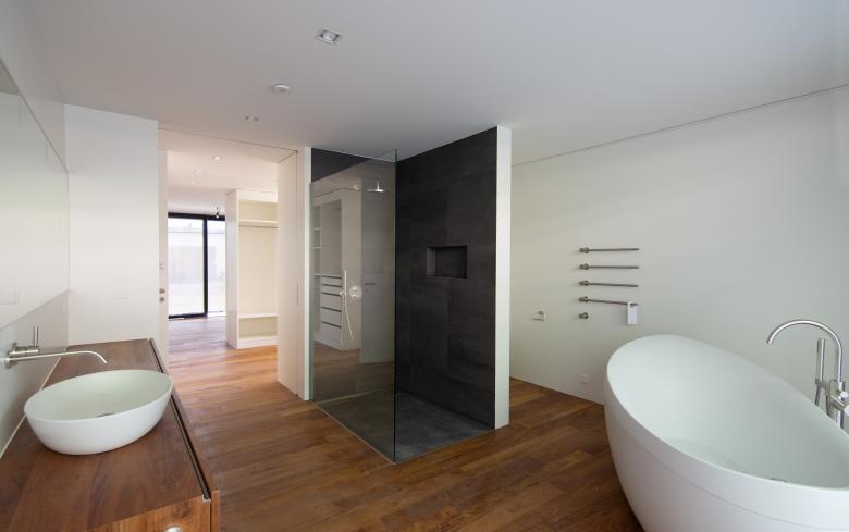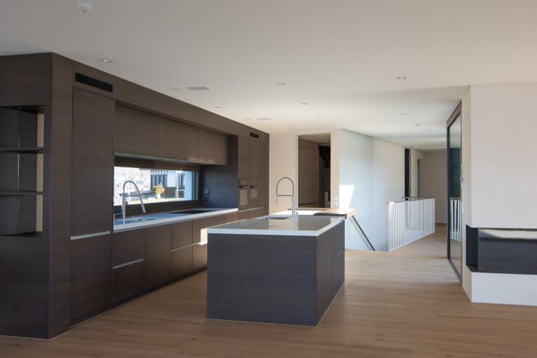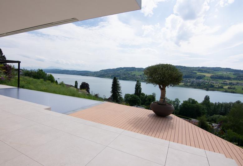 Die Architektur ist klar und sinnlich zugleich. Nach innen öffnen sich die Villen: Grosse Fenster und Terrassen erfüllen die Räume mit Licht und verleihen ihnen Leichtigkeit. Eichenholz vermittelt Geborgenheit. Unter der Parkanlage erstreckt sich eine Tiefgarage. Die privaten Landflächen bieten bei den vorderen Häusern Platz für einen Pool. Bei den hinteren Häusern wird der Pool, für eine bestmögliche See-und Bergsicht, auf dem Dach angelegt.