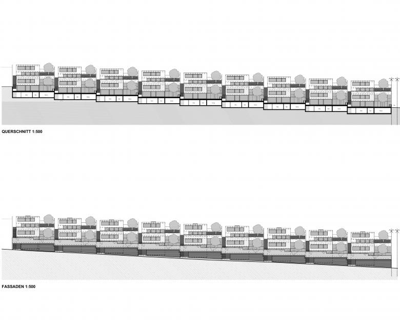 Ein steiles Grundstück entlang der Mutschellenstrasse und der Bahnlinie Bremgarten -Dietikon liess wenig Spielraum für klassische Wohnbauprojekte. Die Topografie und die Lärmbelastung führten zu einem verdichteten Wohnbaukonzept, in dem jede Einheit die benachbarte und die darüberliegende