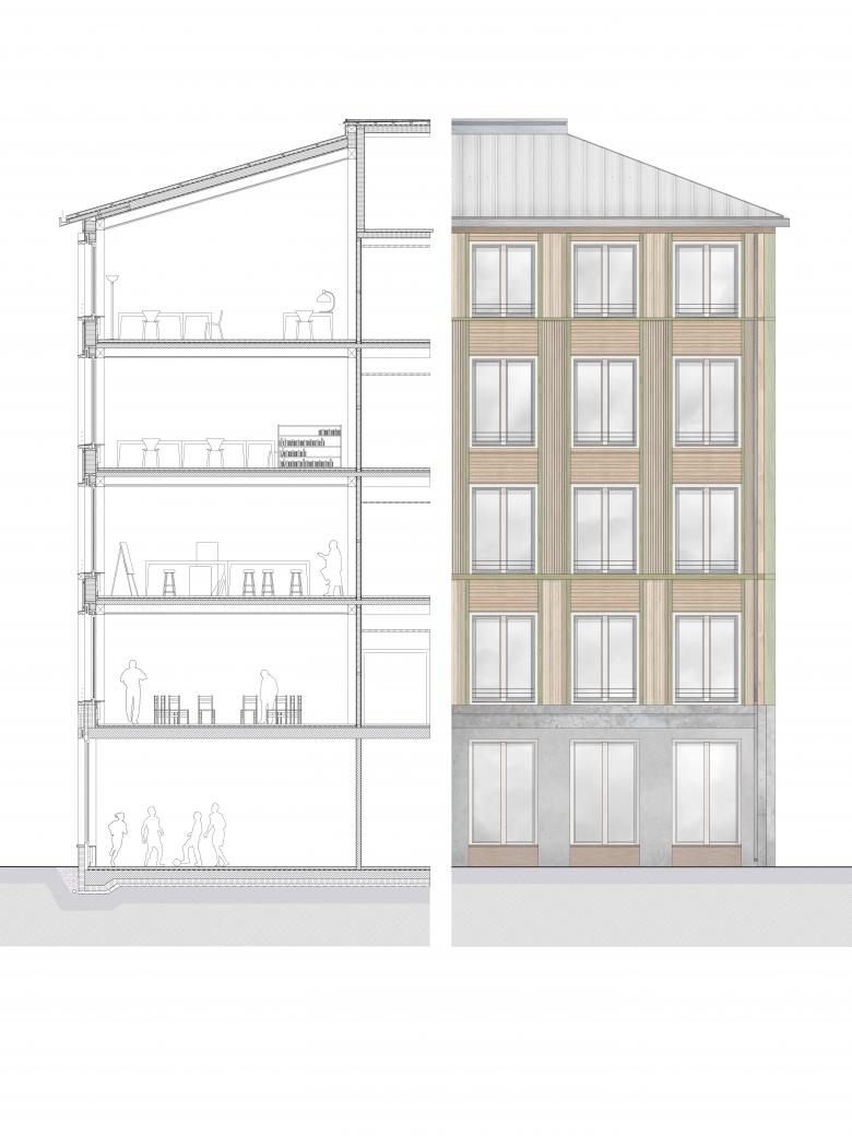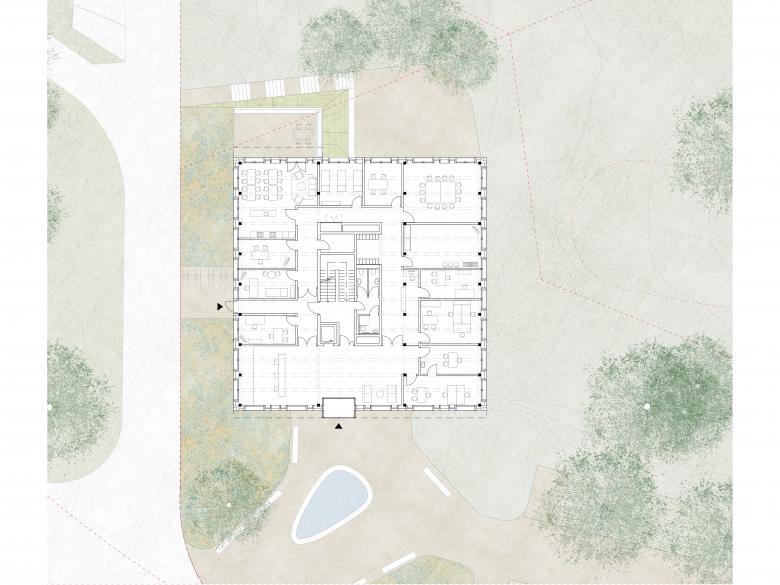 Die Fassaden passen sich in ihrer Massstäblichkeit differenziert ins Areal ein, ohne kopierend zu wirken: der Neubau ist ein selbstbewusster neuer Gefährte im homogenen Ensemble und empfängt die Besucher mit einer einladenden Eingangssituation. Die Themen des Heimatstils – schützende Dächer, Plastizität, Kleinteiligkeit mit dezenter Ornamentik beim Eingang – werden spielerisch in unsere Zeit übersetzt, so dass ein in die Zukunft gerichteter Neubau mit historischem Erbe als Begegnungsplatz für die nächste Generation geschaffen wird.