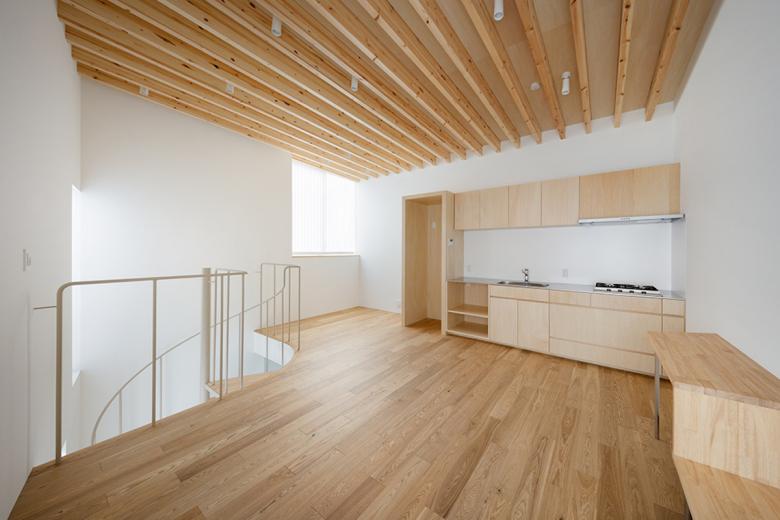 行き止まりの路地はこれに接する数件の住宅に住まう人たちの領域とも言え、半ばプライベートなスペースだ。この路地を敷地内に延長させ、周囲の街並みに倣いインターロッキングを敷き、それに隣接するように3戸のメゾネット住戸を配置した。各住戸は独立性を高めつつ、この路地に様々な仕方で関係し、敷地の奥に行くに従って徐々にプライバシーが高まる状態を模索した。